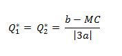 Q1* = Q2* = b - MC / |3a|
