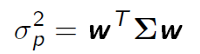 Portfolio variance: weight transposed * variance covariance matrix * weight vector.