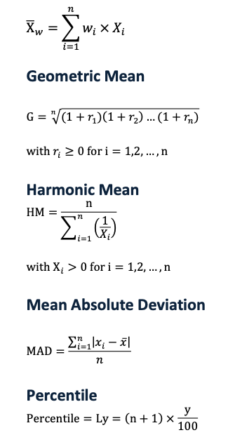 Geometric mean, harmonic mean, mean absolute deviation and percentile formula
