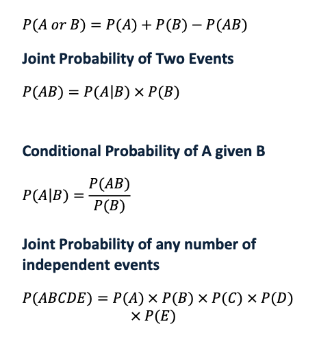 Prob of A or B, Joint probaility of A and B, Joint Probability of any number of