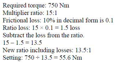 The multiplier ratio is adjusted for friction loss and then the required torque setting is divided by this new adjusted ratio.