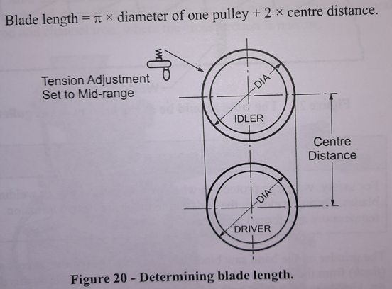How do you calculate blade length when making a new blade for a band saw?