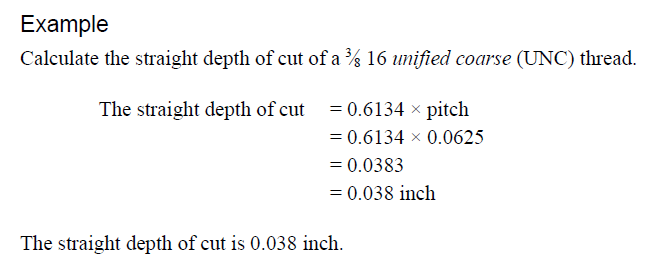 Straight depth of cut = 0.6134 x pitch