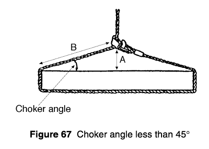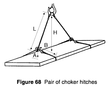 B = length of sling legs at the choker hitch