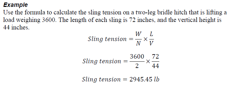 Sling tension = (W/N) x (L/V)