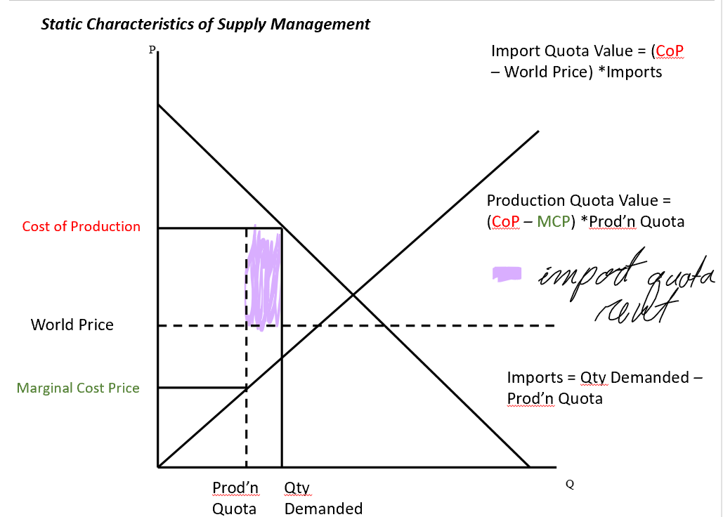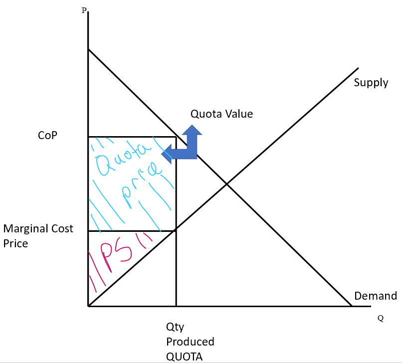 (CoP - World Price) * (Qty D - Prod’n Quota)
