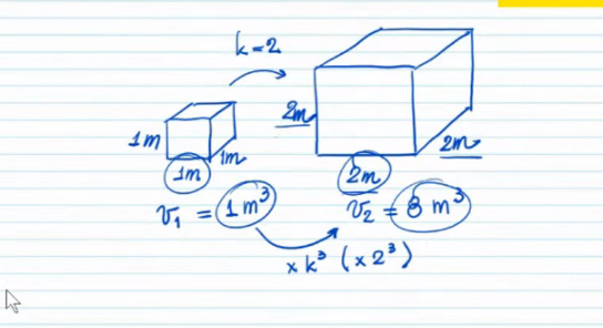 8 vezes (a constante de aumento da aresta elevada ao cubo).