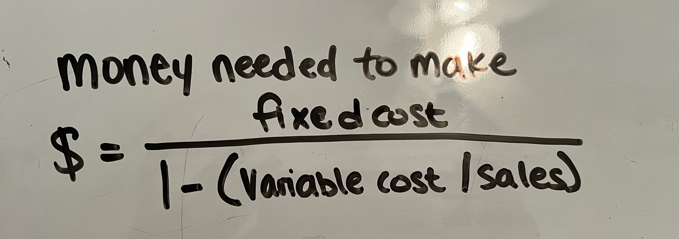 breakeven point - money needed to make =