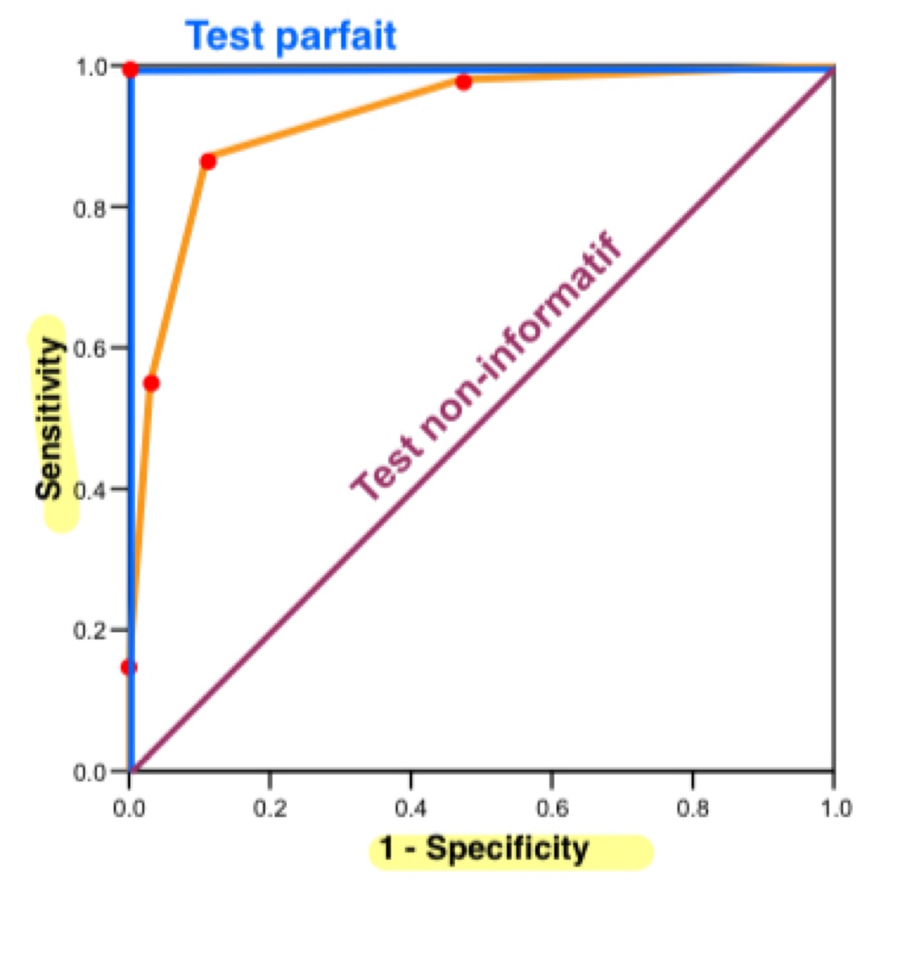 AUC = 0,5: test Non-informatif