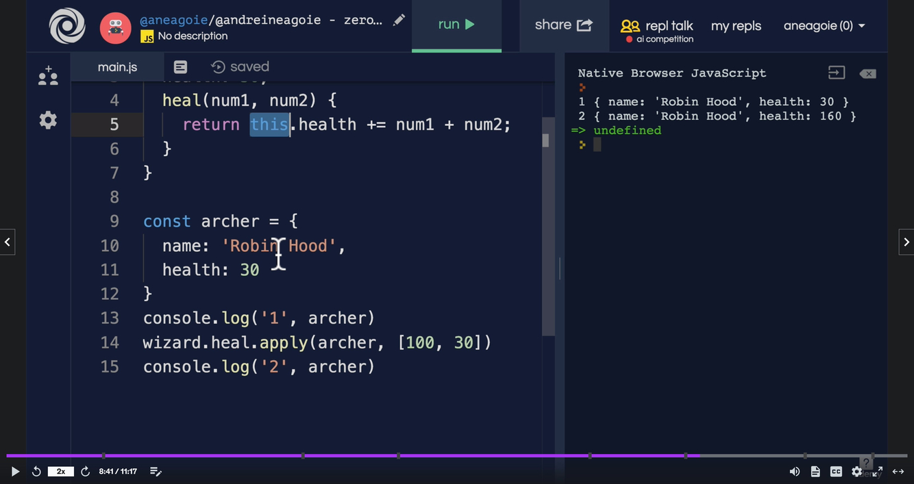 obj.sing() // “lalala Billy”