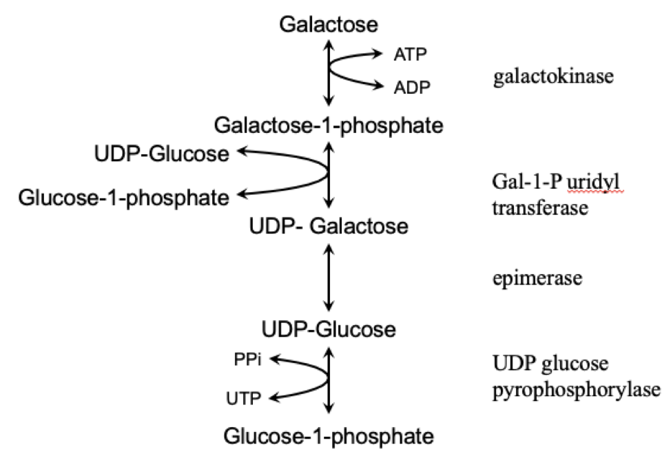 Loss of galactokinase also results in build-up of galactose but not in the build-up of gal-1-P, which causes liver damage and anemia.