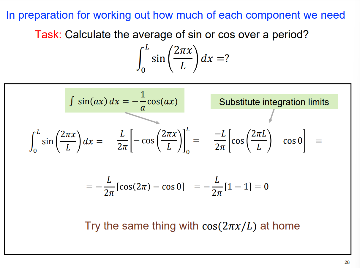 Integrate f(x) over a whole period.