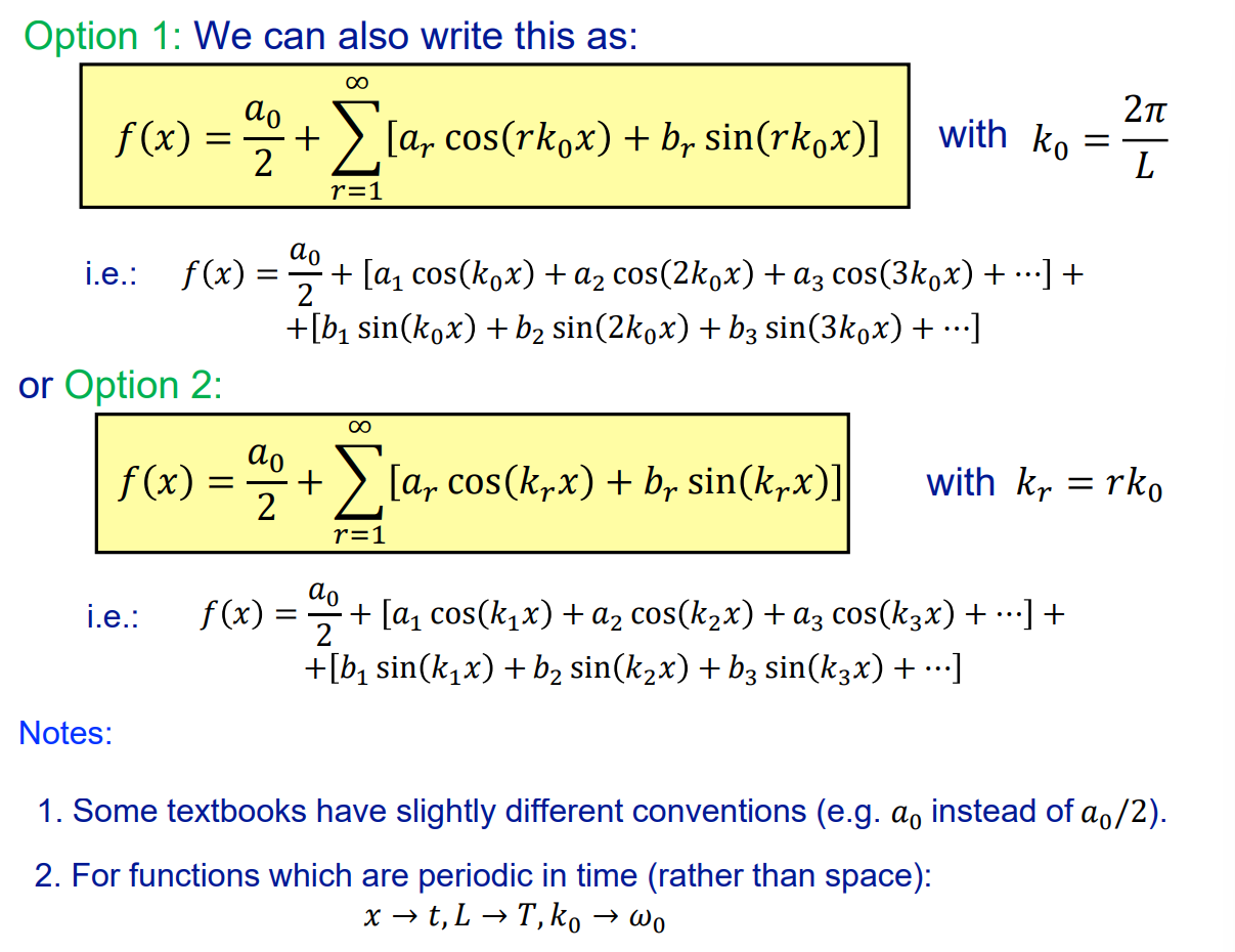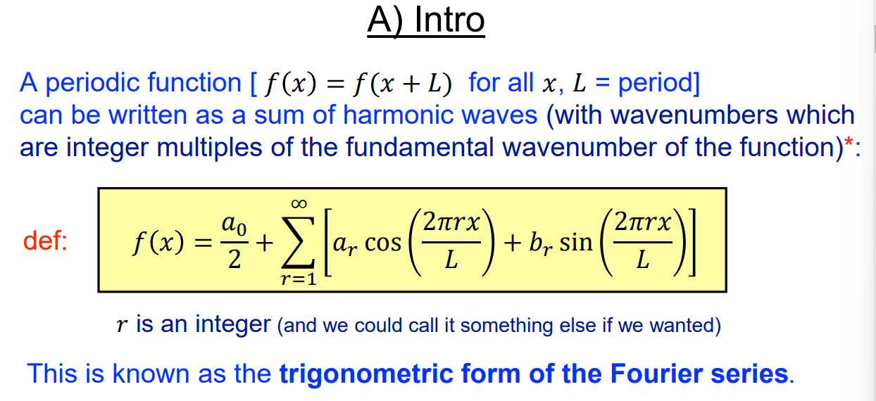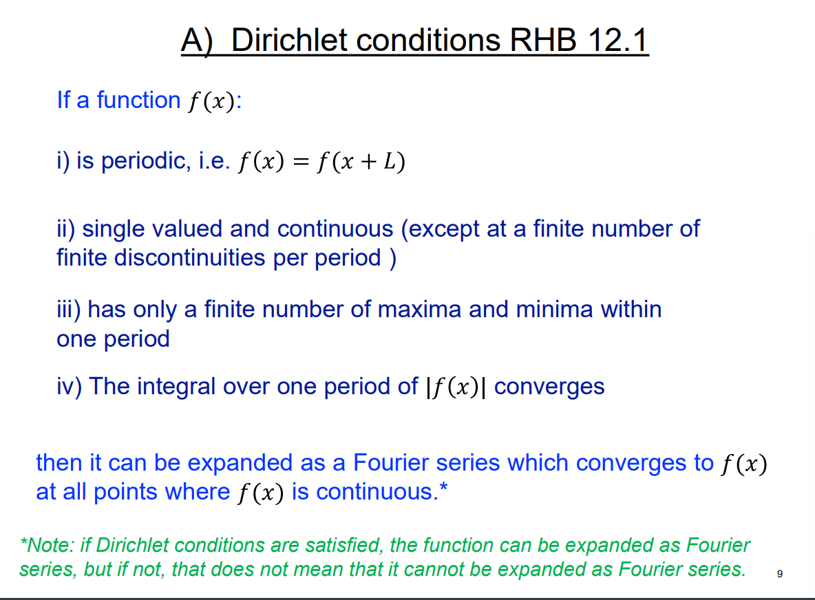 Read green. They tell you that a function can be expanded as a fourier series.
