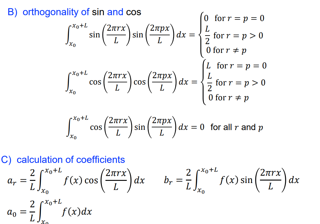 Derive the equations for the fourier coefficients.