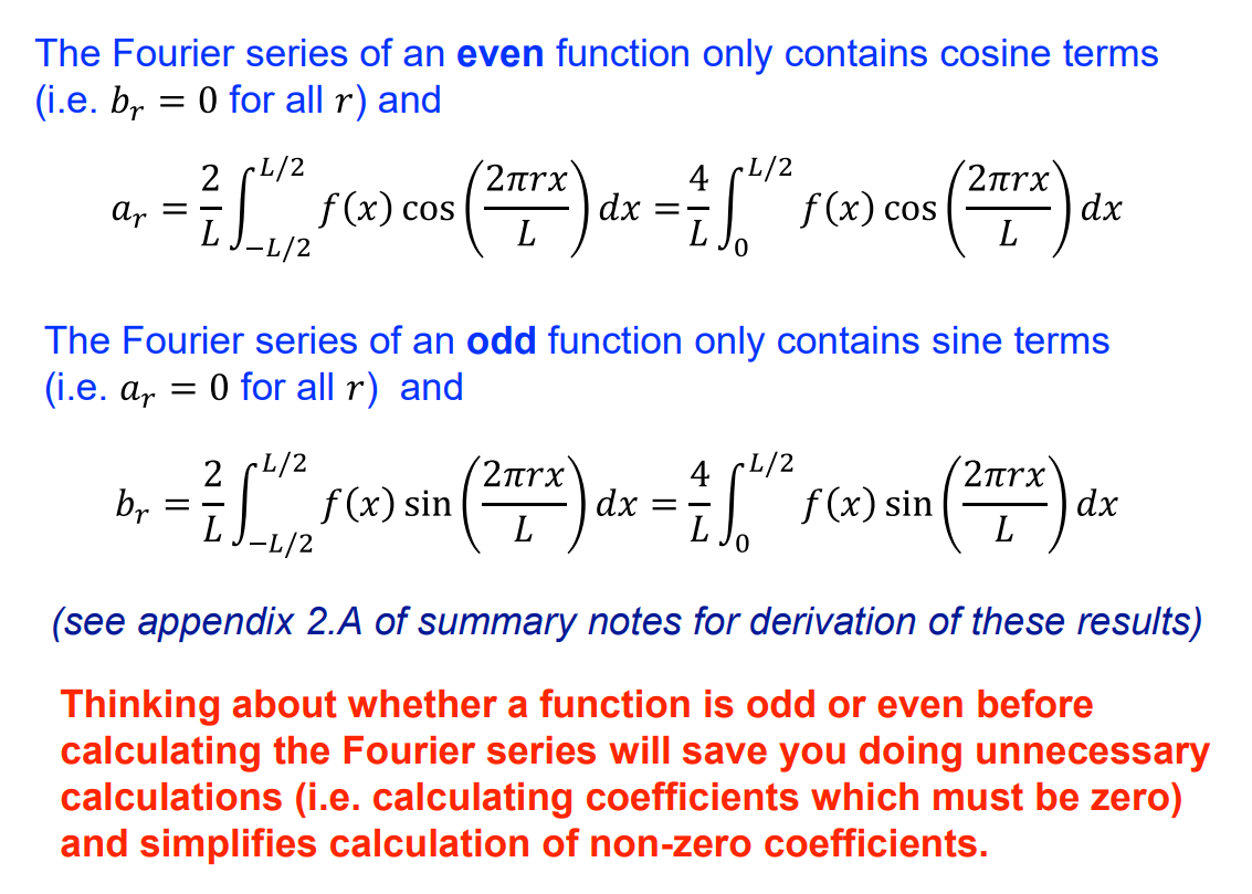Which fourier coefficients are 0 for odd or even functions?