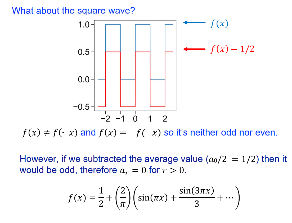 1/2 is added to make the square wave function shown from a function that can be expressed as an odd function f(x) -1/2.