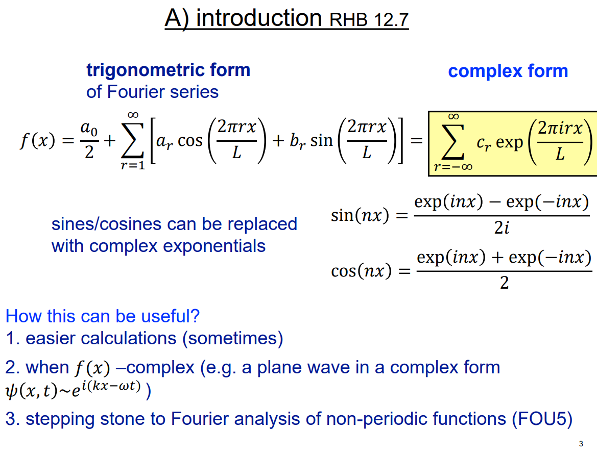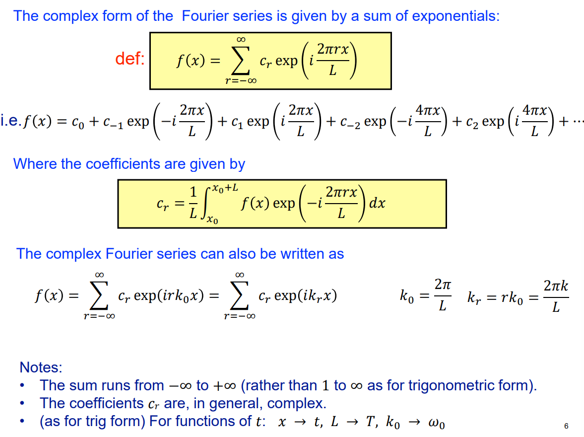 What is the complex form of the FOURIER SERIES