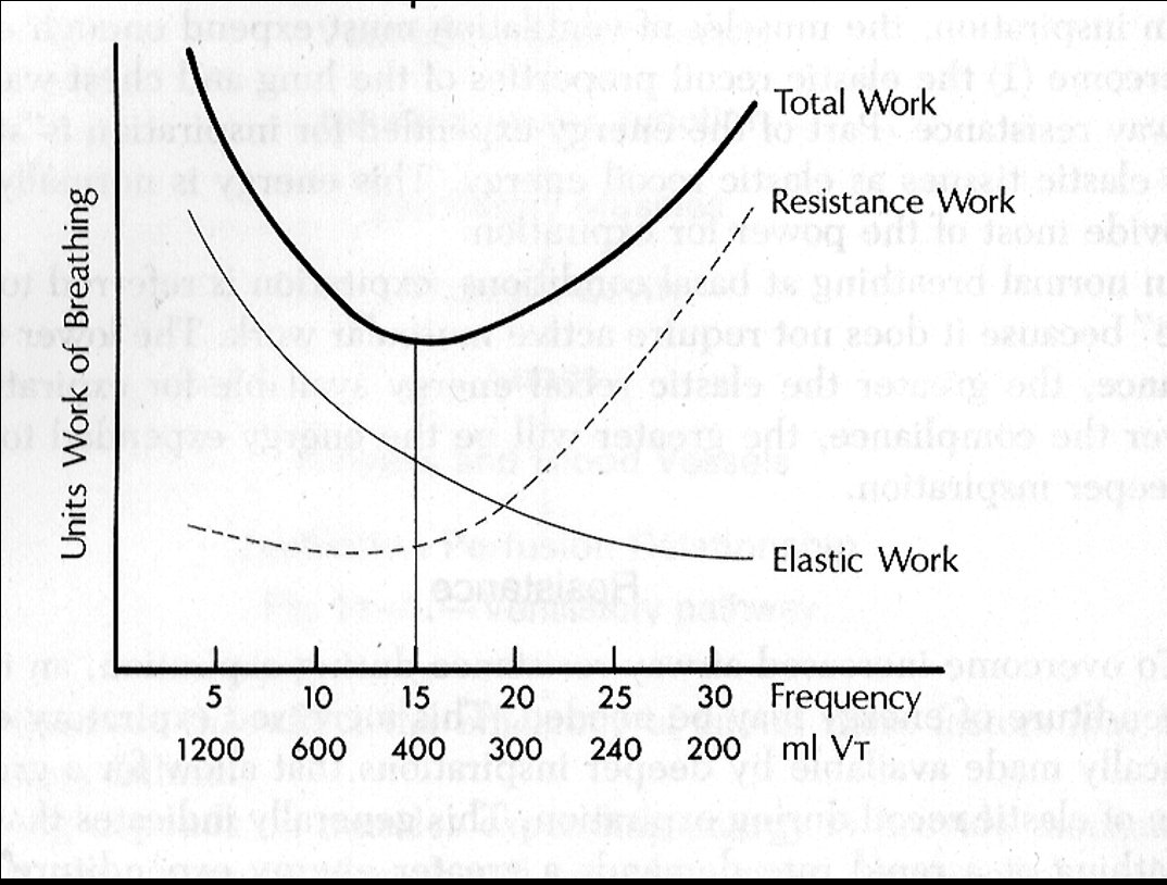 minimal work has a tidal volume of 400 and how many breaths per minute