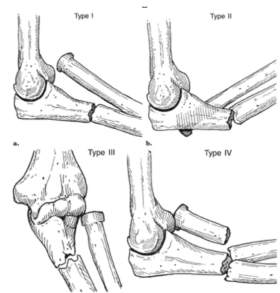 I: angulación anterior del apex del radio con fractura del cúbito medial o proximal –> niños