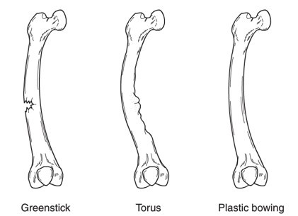 list and describe several types of unique pediatric fractures (not involving the growth plate)
