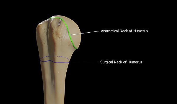 The anatomical neck of humerus → risk of avascular necrosis