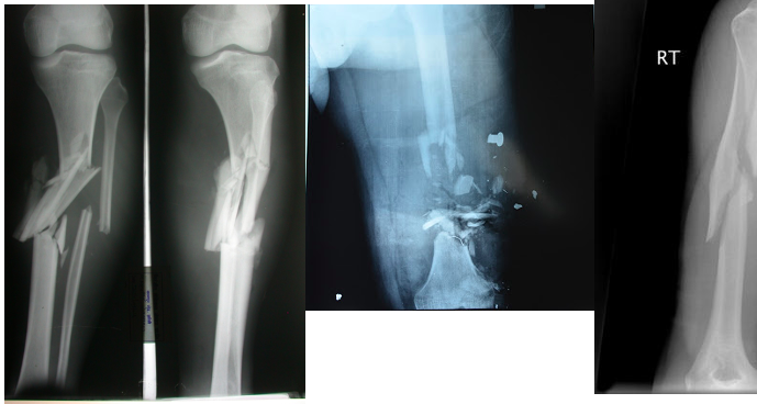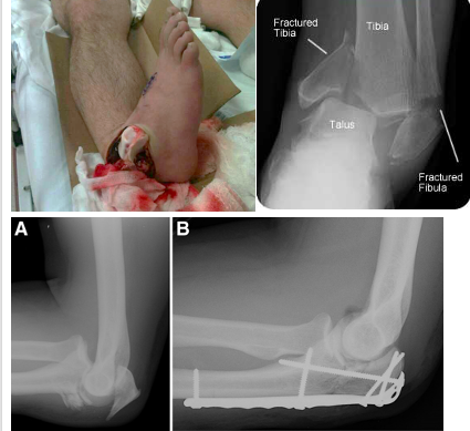 Avulsion fracture: caused by traction; when a piece of bone attached to a tendon or ligament gets pulled away from the main part of the bone.
