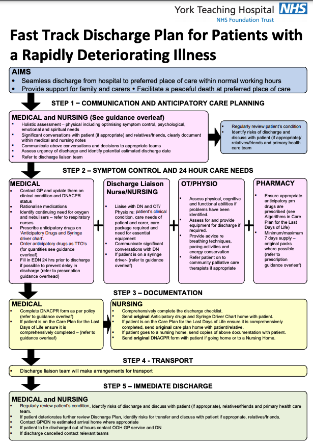 Medical decision to deem them fast track which allows for funding to be sought to allow patient to be discharged to a place they want to die