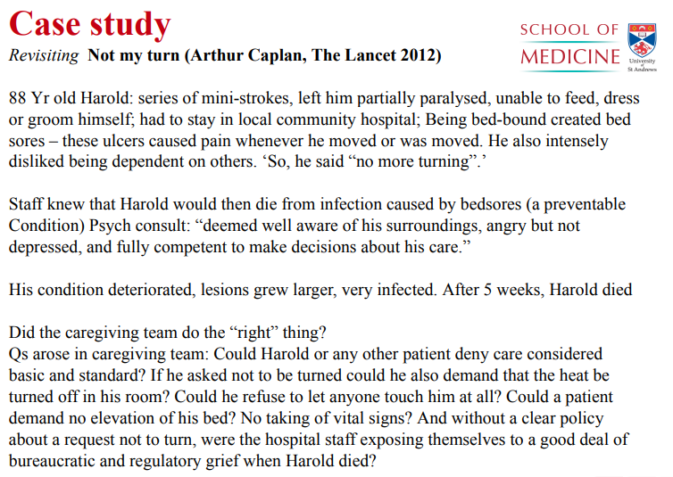 * Doctrine of double effect must be considered.
