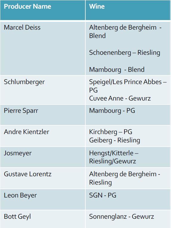 Pinot Noir Grand Cru: Kirchberg de Barr in Barr / Hengst in Wintzenheim / Vorbourg in Rouffach (2022 added to Ries, PG and Gewurz)