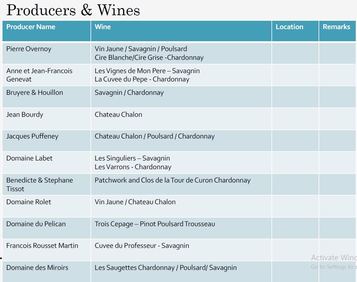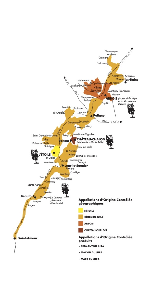 6 AOP: Arbois, Chateau Chalon, Cremant du Jura, Cotes du Jura,