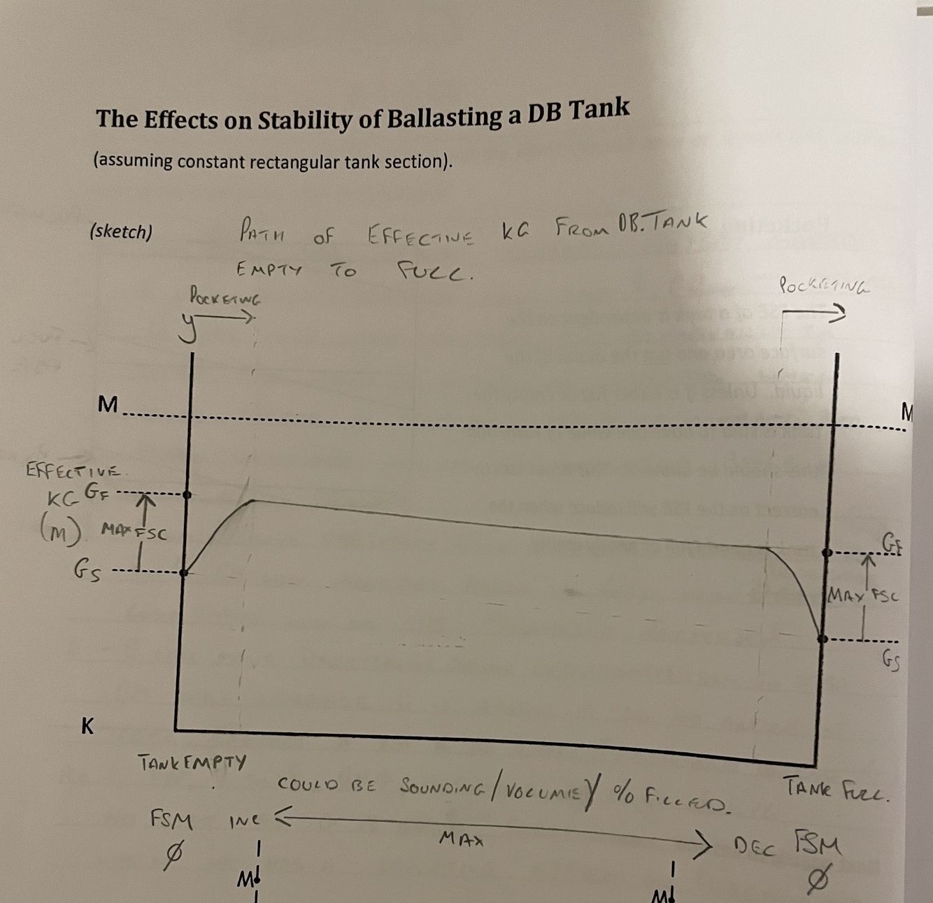Sketch a graph to show how the effective KG of a ship changes as a DB tank is ballasted.