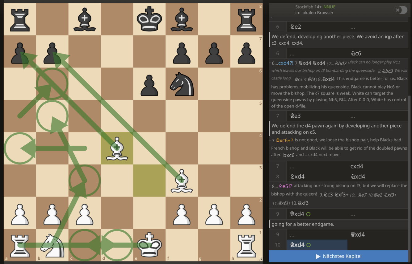 We go for a queen exchange and a better endgame. Black still has the bad bishop on c8 and we have two strong bishop on f3 and d4, bombarding the queenside.