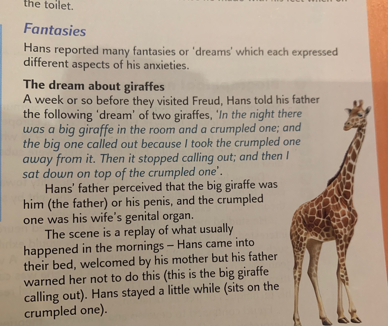 Refer to Freuds theory of personality development and a form of therapy (talking cure)