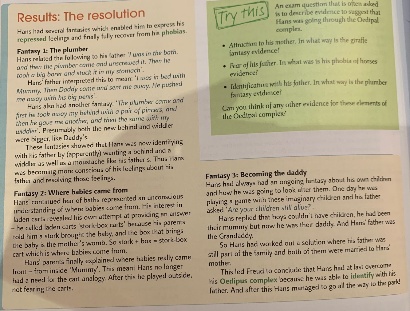 They see their fathers as a rival wishing them dead - a desire which is repressed