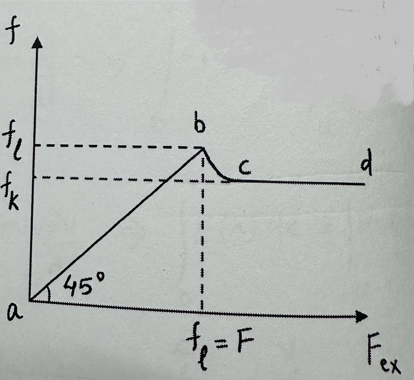 Draw the graph of external Force F and friction f? Explain the various segments?