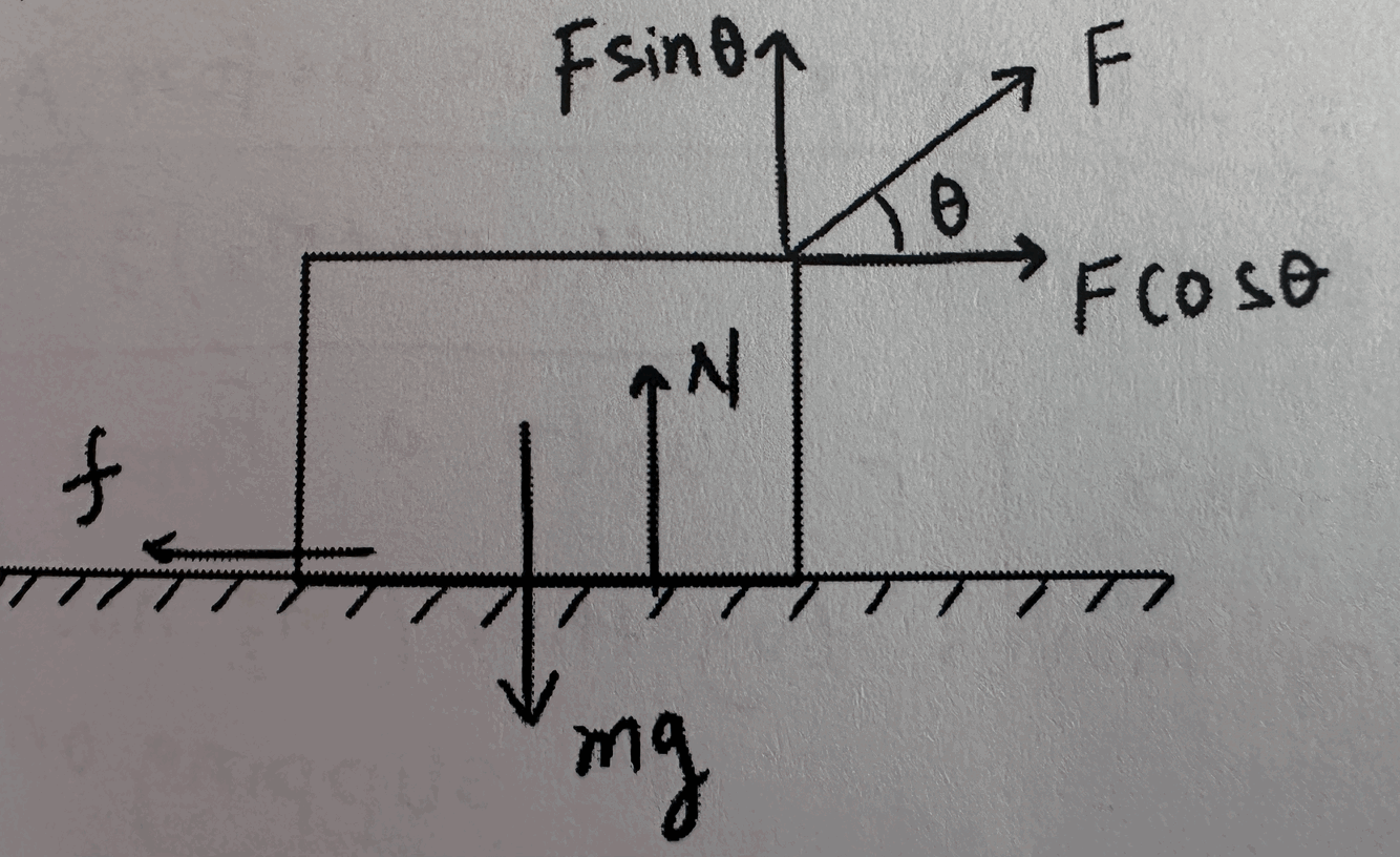 FCosϴ = 𝛍 (mg - FSinϴ)