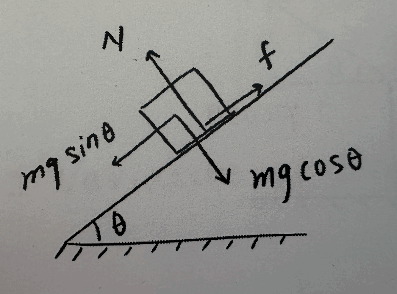 mgsin𝝷 = 𝛍N, N = mgcos𝝷