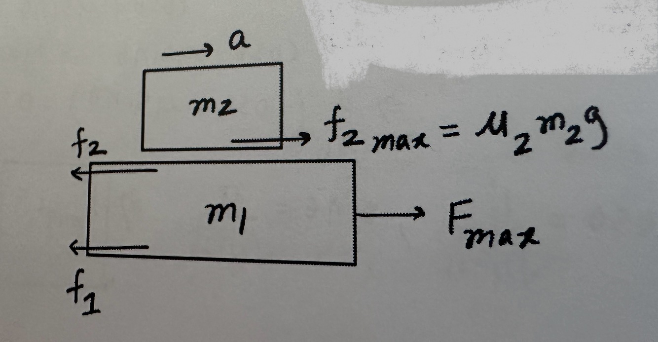 Fmax - f1 = (m1+m2)a, substituting for a from (i)