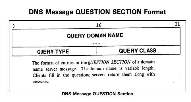 **QUERY CLASS** specifies the class of the query, typically Internet (**IN**)