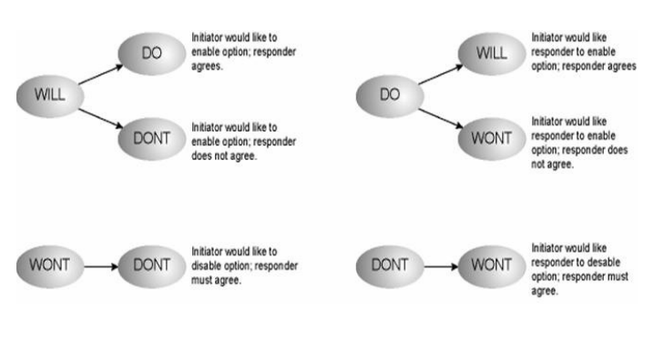 IAC, SB, WILL (DO), ‘0’, SE (send in 8-bit binary)