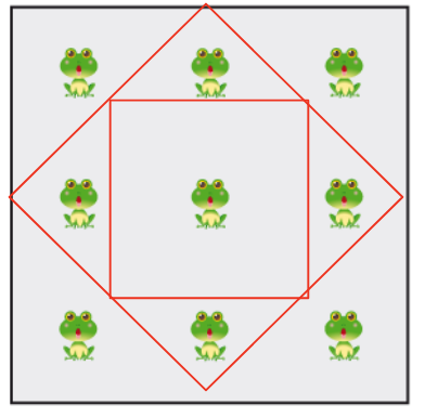 Neuf grenouilles se retrouvent dans une enceinte carrée au jardin zoologique. Vous devez y ajouter deux nouvelles enceintes carrées de telle sorte qu’il sera possible d’isoler chaque grenouille dans sa propre enceinte. (utilisez le mode dessin)
