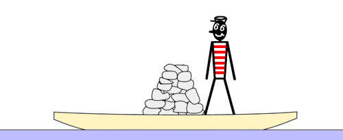Vous vous réveillez dans une barque au milieu d’un lac calme après une soirée bien arrosée, on ne vous a laissé aucun aviron. Tout ce qu’il y a, c’est un tas de pierres de tailles moyennes au centre de l’embarcation. Comment pourriez-vous faire pour atteindre la berge sans vous mouiller ?