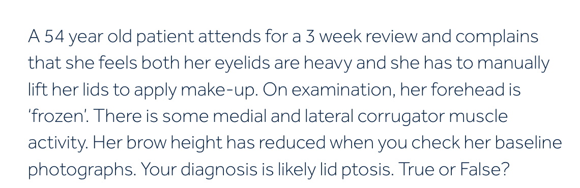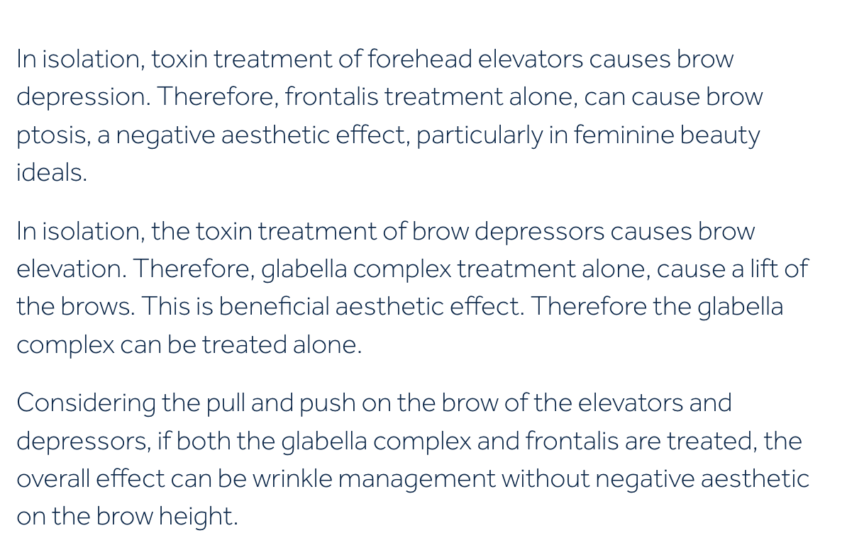bilateral brow ptosis from frontalis treatment without glabella treatment-> brow depression-> ptosis
