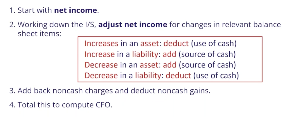 To calculate CFO, we need to remove the effect of these non-cash items from net income.
