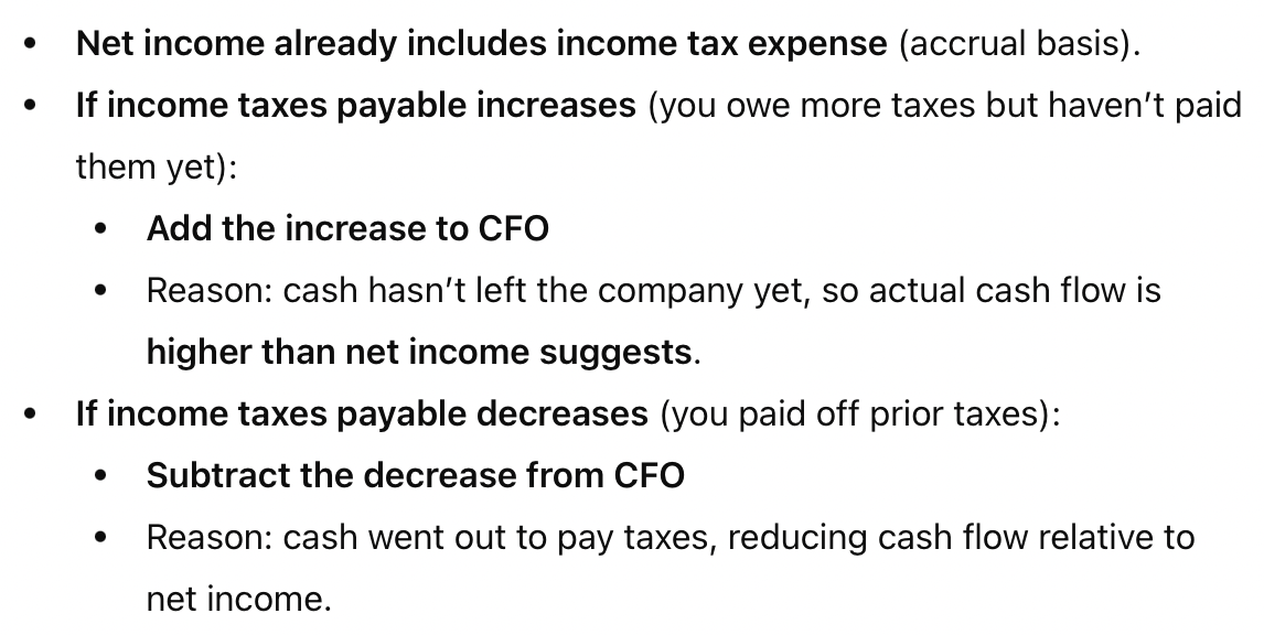 30.1 How should we treat increases/decreases in income tax payable when calculating CFO?