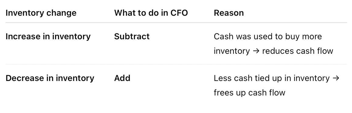 30.1 What do we do with an increase/decrease in inventory when calculating CFO?