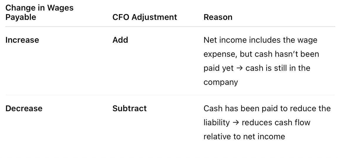 30.1 How do we treat increases/decreases in wages payable when calculating for CFO?
