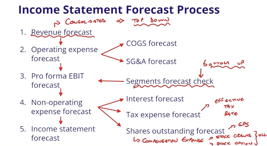 38.1 What are the steps in producing an income statement from a revenue forecast?