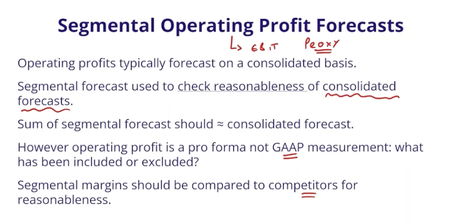 problem with consolidated forecasts - is that it is harder to compare to other companies (as niche makeup of each company) - if can find segmental makeup then you can compare using this