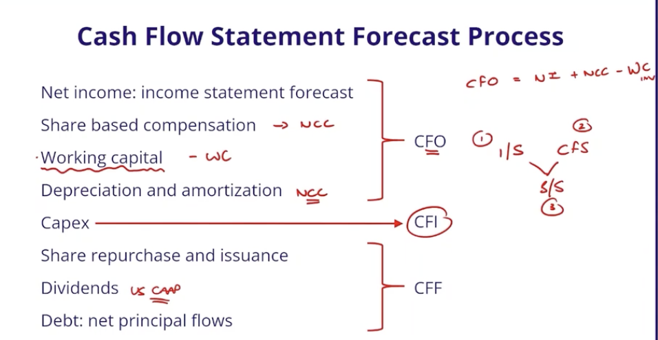 Net income + non cash charges - WC investment = CFO